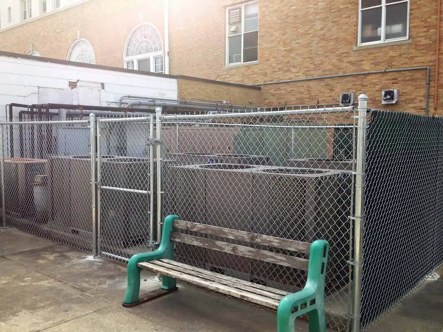 People sitting on the top of the fence, climbing the fence, leaning heavy objects against the fence, or branches falling onto the top of the fence can all easily bend a low-quality chain link fence rail! Not ours. Our fences are built to last and a key reason our chain link fencing lasts so long and looks like new is because of the higher quality chain link fencing materials we install for our residential and our commercial clients.